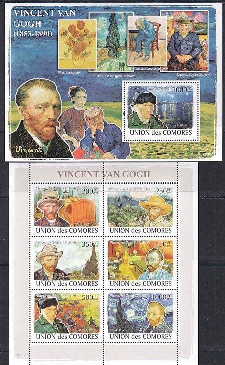 Коморы 2008 год. Винсент Ван Гог, малый лист + блок