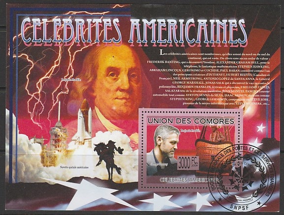 Коморы 2009 год. Американские знаменитости, блок (гашёный)