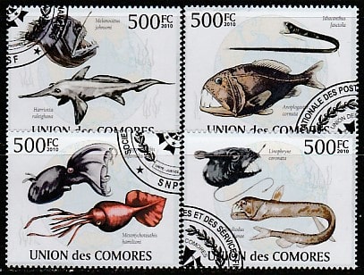 Коморы 2009 год. Чудовища морей, 4 марки (гашёные)