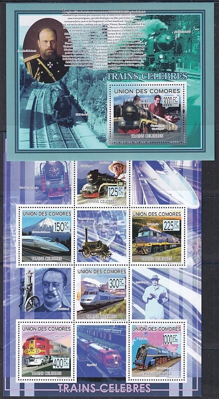 Коморы 2009 год. Известные поезда, блок + малый лист