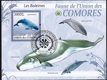 Коморы 2009 год. Киты, блок (гашёные)