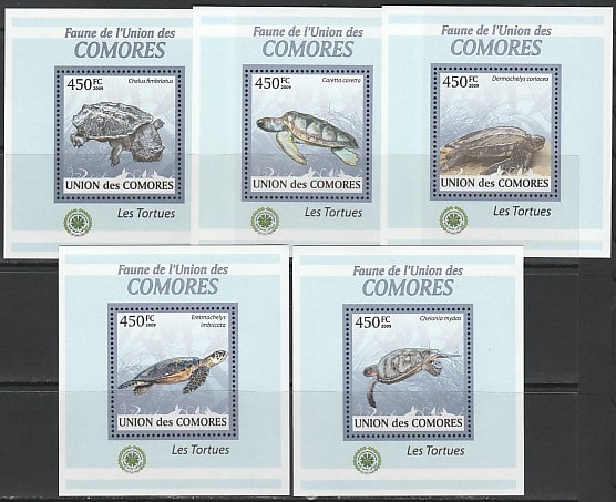 Коморы 2009 год. Морские черепахи, 5 люксблоков