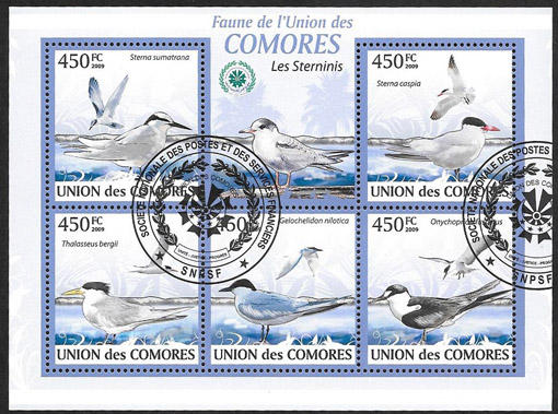 Коморы, 2009. Морские птицы. 1 гаш. бл. + 1 гаш. мал. лист