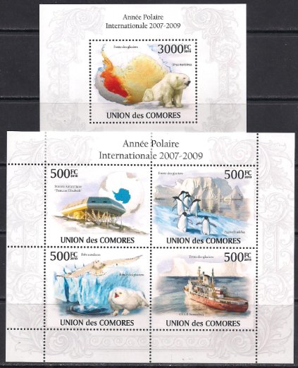 Коморы 2009 год. Полярные исследования. Малый лист + Блок 24м