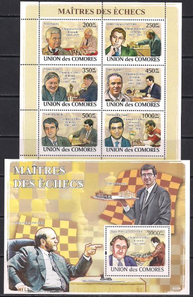 Коморы 2009 год. Шахматисты. Малый лист + блок
