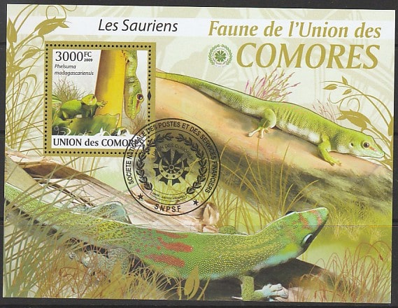 Коморы 2009 год. Ящерицы, блок (гашёный)