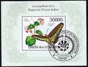 Коморы 2010 год. Бабочки региона Индийского океана, блок (гашёный)