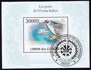 Коморы 2010 год. Порты Индийского океана, блок (гашёный)