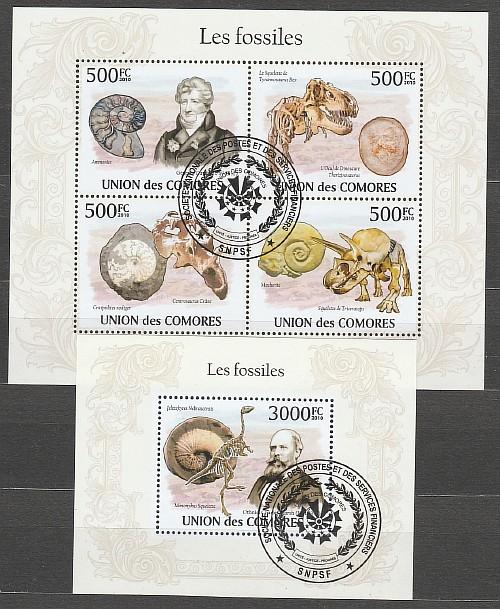 Коморы 2010 год, Палеонтологические Остатки, гашёный малый лист + блок.