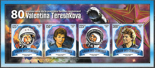 Коморы 2017 год. 80 лет первой женщине-космонавту В. Терешковой. "Восток-6". Малый лист