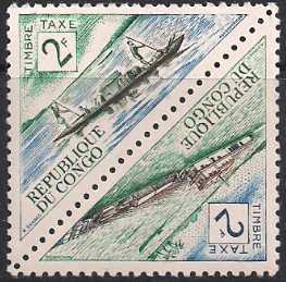 Конго 1961 год. Каноэ. Баржа. 2 марки из серии