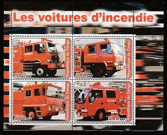 Конго 2003 год. Пожарные машины, малый лист (III)