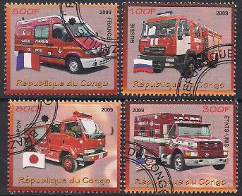 Конго 2009 год. Пожарный транспорт. 4 гашеные марки