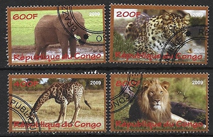 Конго 2009 год, животные Африки, 4 гашеные марки