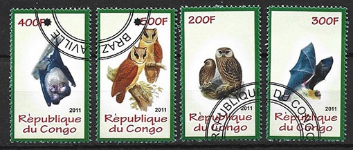 Конго 2011 год, совы и летучие мыши, 4 гашеные марки