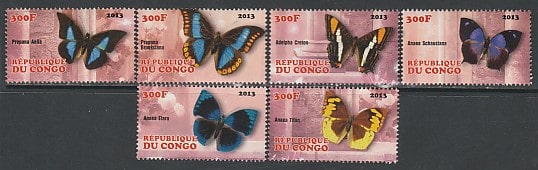 Конго 2013 год. Бабочки, 6 марок