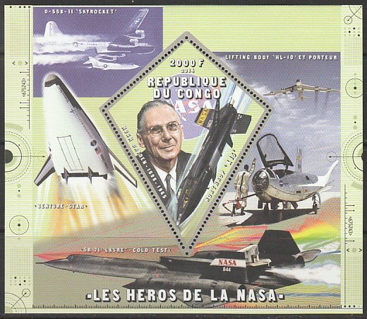 Конго 2014 год. Учёный Хью Драйден, блок. Сувенирный выпуск.