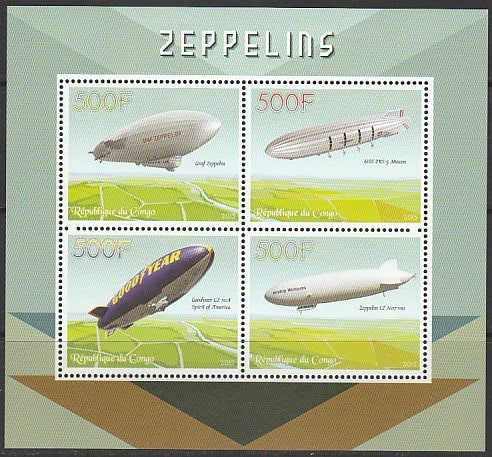 Конго 2015 год. Дирижабли, малый лист.