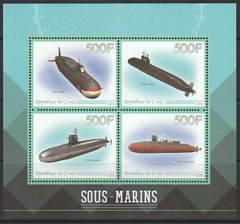 Конго 2015 год. Субмарины, малый лист. Сувенирный выпуск.