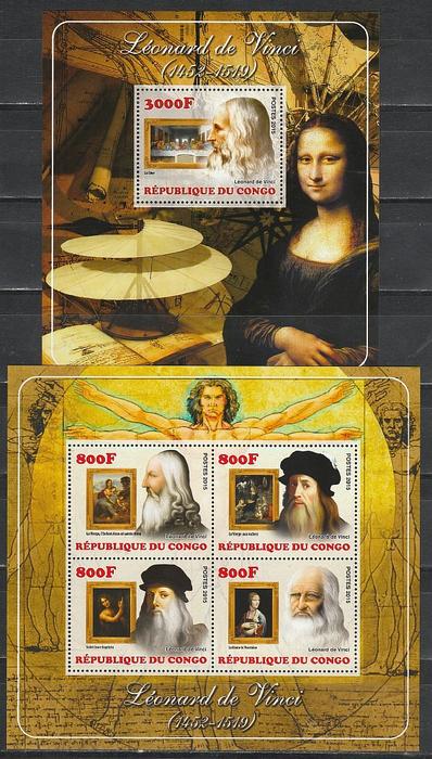 Конго 2015 год, Живопись, Леонардо да Винчи, 1 малый лист и 1 блок