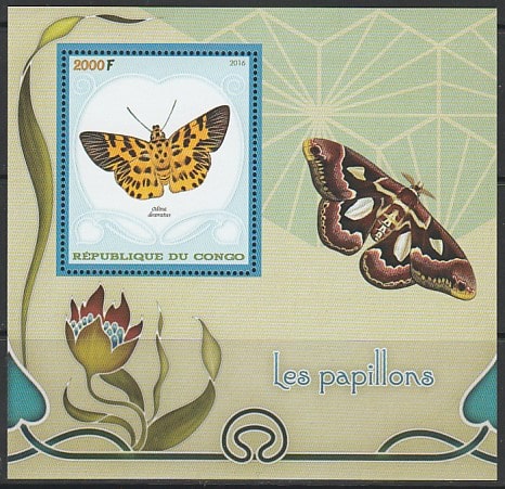 Конго 2016 год. Бабочки, блок (II) Сувенирный выпуск.