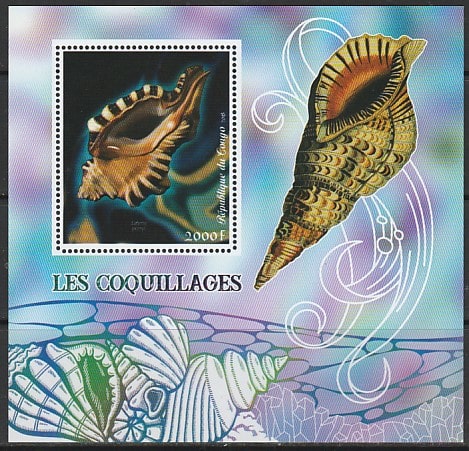Конго 2018 год. Морские раковины, блок (II) Сувенирный выпуск.