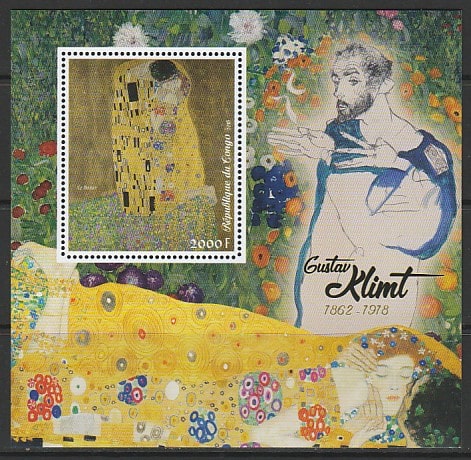 Конго 2018 год. Живопись австрийского художника Густава Климта, блок. Сувенирный выпуск.