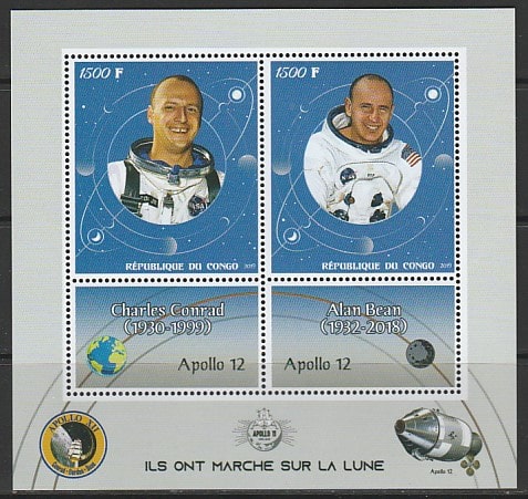 Конго 2019 год. Члены экипажа "Аполлона-12": Чарльз Конрад и Алан Бин, малый лист.