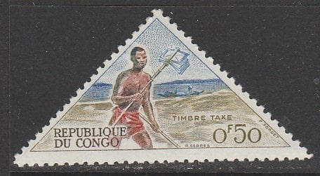 Конго (Браззавиль) 1961 год. Средства доставки почты: почтовый бегун, 1 доплатная марка из серии (наклейка) (1 из 12)