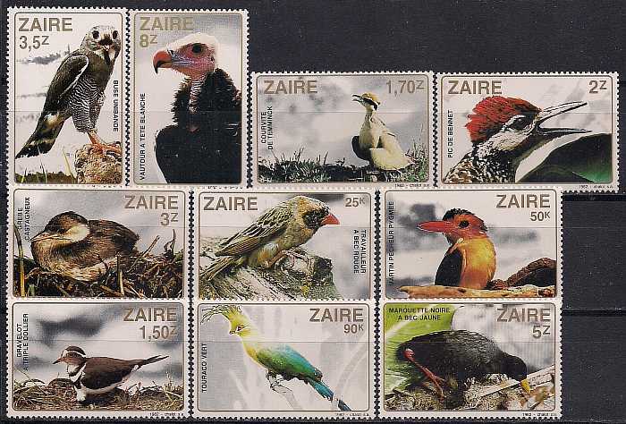 Конго (Заир) 1982 год. Птицы. 10 марок 13м