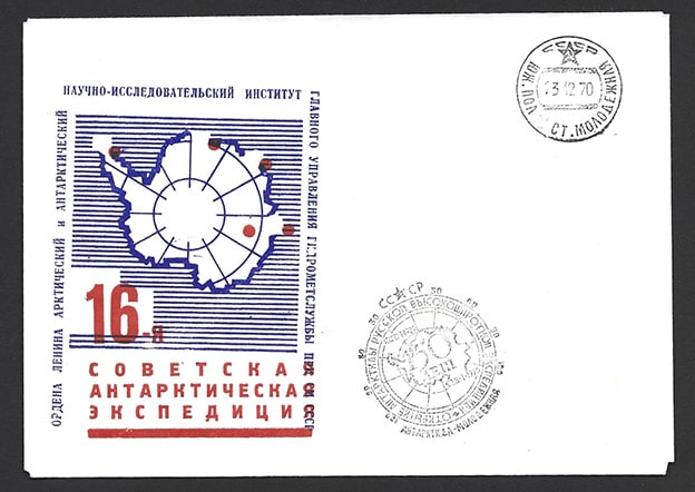 Конверт 16 Советская Антарктическая экспедиция со спецгашением Антарктида - Молодежное 28.01.1970 год