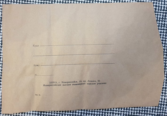 Конверт. 18,5 х 26 см. Новороссийское высшее инженерное морское училище. Зак. 94