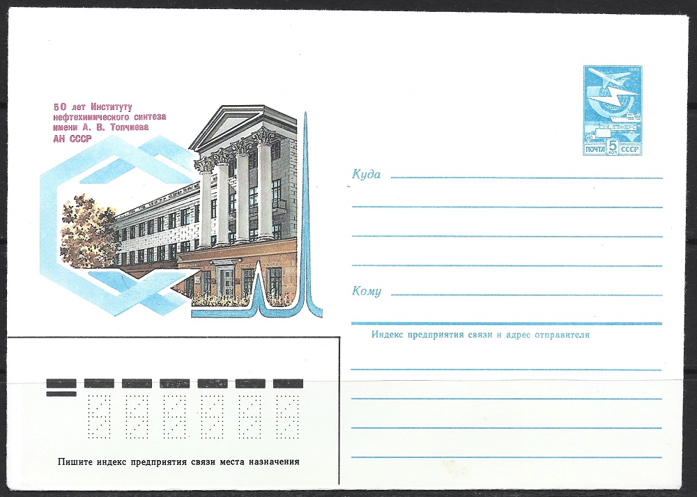 Конверт 50 лет Институту нефтехимического синтеза им. А.В. Топчиева АН СССР 22.08.1984 год