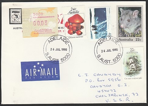 Конверт Австралии. Флора и фауна, гашение: 26.07.1990 год, Южная Австралия, Аделаида, прошёл почту