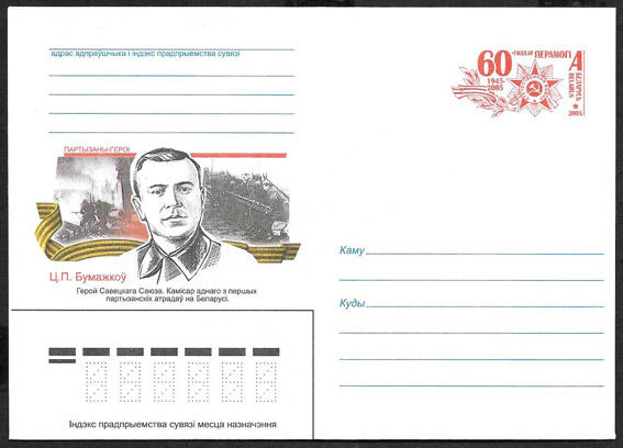 Конверт Белоруссия 2005 год, 60 лет Победы в ВОв, Ц.П. Бумажков