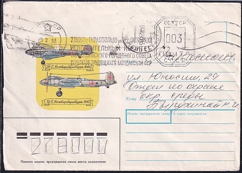 Конверт Бомбардировщики Пе-2, Ту-2, 28.07.1989 год, прошел почту (ВВ)