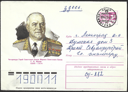 Конверт Четырежды Герой Советского Союза Маршал Советского Г.К.Жуков. 05.11.1975 год. Прошёл почту.