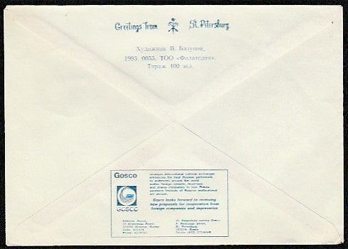Конверт. Гастроли Мстислава Ростроповича в СПб с Национальным оркестром США, 1993 год, штемпель гашения