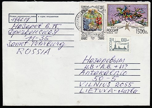 Конверт. Иллюстрации к детским сказкам, прошёл почту в 1997 году