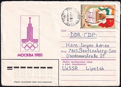 Конверт Москва 1980 Олимпиада, 1981 год, прошел почту (ГДР-СССР)
