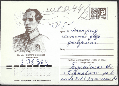 Конверт Н.А. Островский. 05.04.1974 год. Прошёл почту