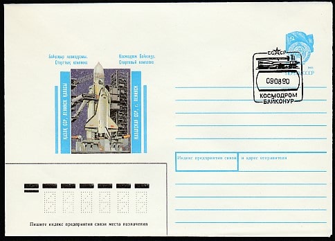 Конверт. Неудачный запуск РН "Протон К/ДМ-2" со спутником связи "Экран-М", гашение 09.08.1990 год, к/Байконур (+1Ю)