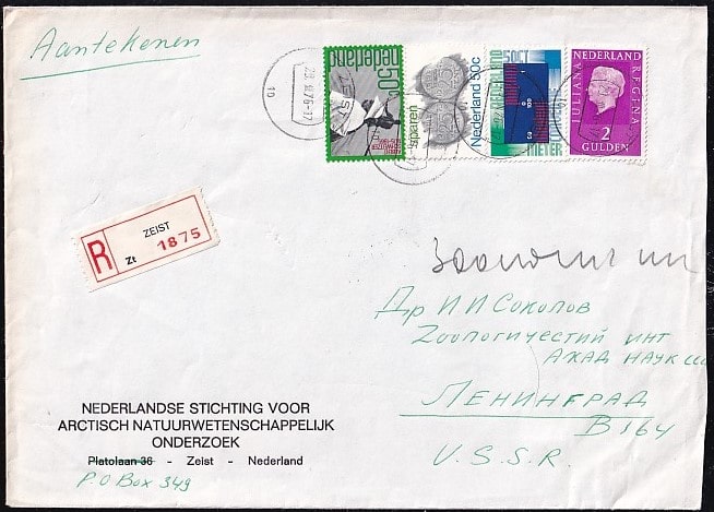 Конверт Нидерландов Голландский фонд арктических наук, 6.04.1976 год, прошел почту