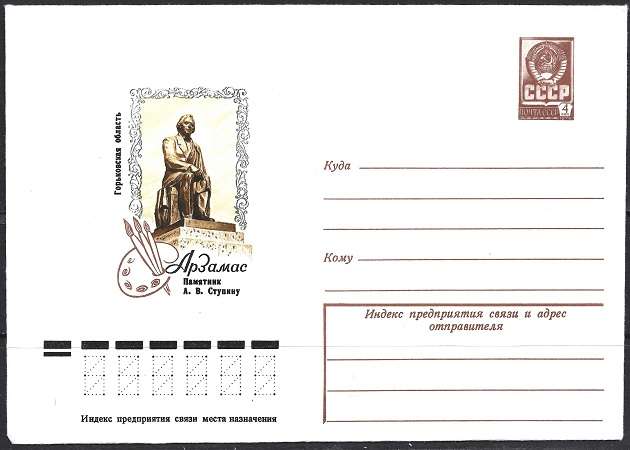 Конверт Памятник А.В. Ступину. Русский художник, педагог. г.Арзамас. Горьковская обл. 09.10.1978 год.