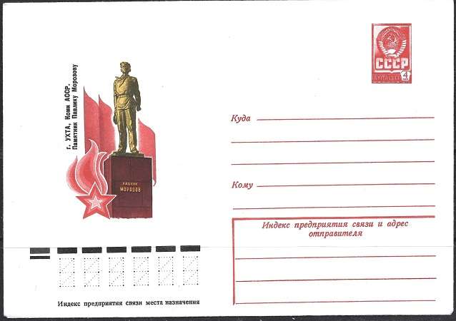 Конверт Памятник Павлику Морозову. г.Ухта. Коми АССР. 19.04.1978 год.