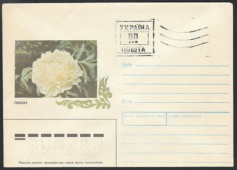 Конверт. Пион белый. Провизорий Украины 50 крб. 1992 год (Ю)