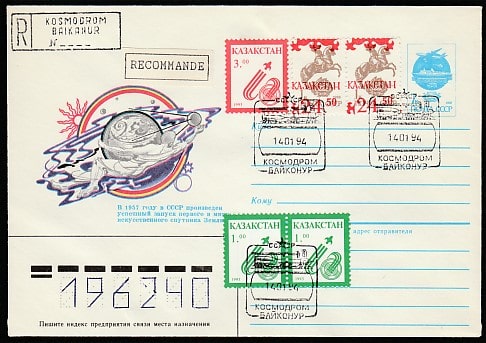 Конверт. Посадка КК "Союз ТМ-17" (экипаж посадки: В. Циблиев, А. Серебров), гашение 14.01.1994 год, к/Байконур (+1Ю)