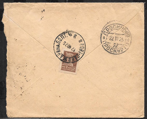 Конверт прошел почту Полтава - Проскуров, 1925 год