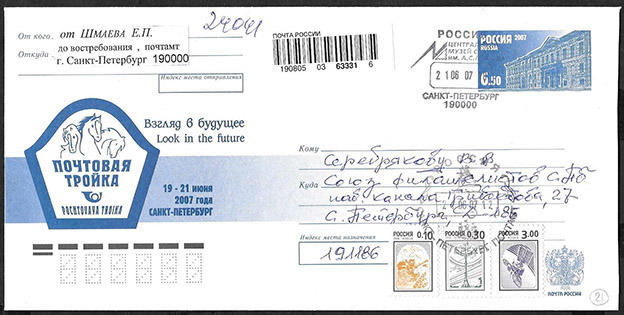 Конверт прошел почту со спецгашением - Центральный Музей Связи им. А.С. Попова, 2007 год