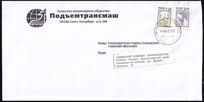Конверт рекламный ЗАО Подъемтрансмаш, 2002 год, прошел почту